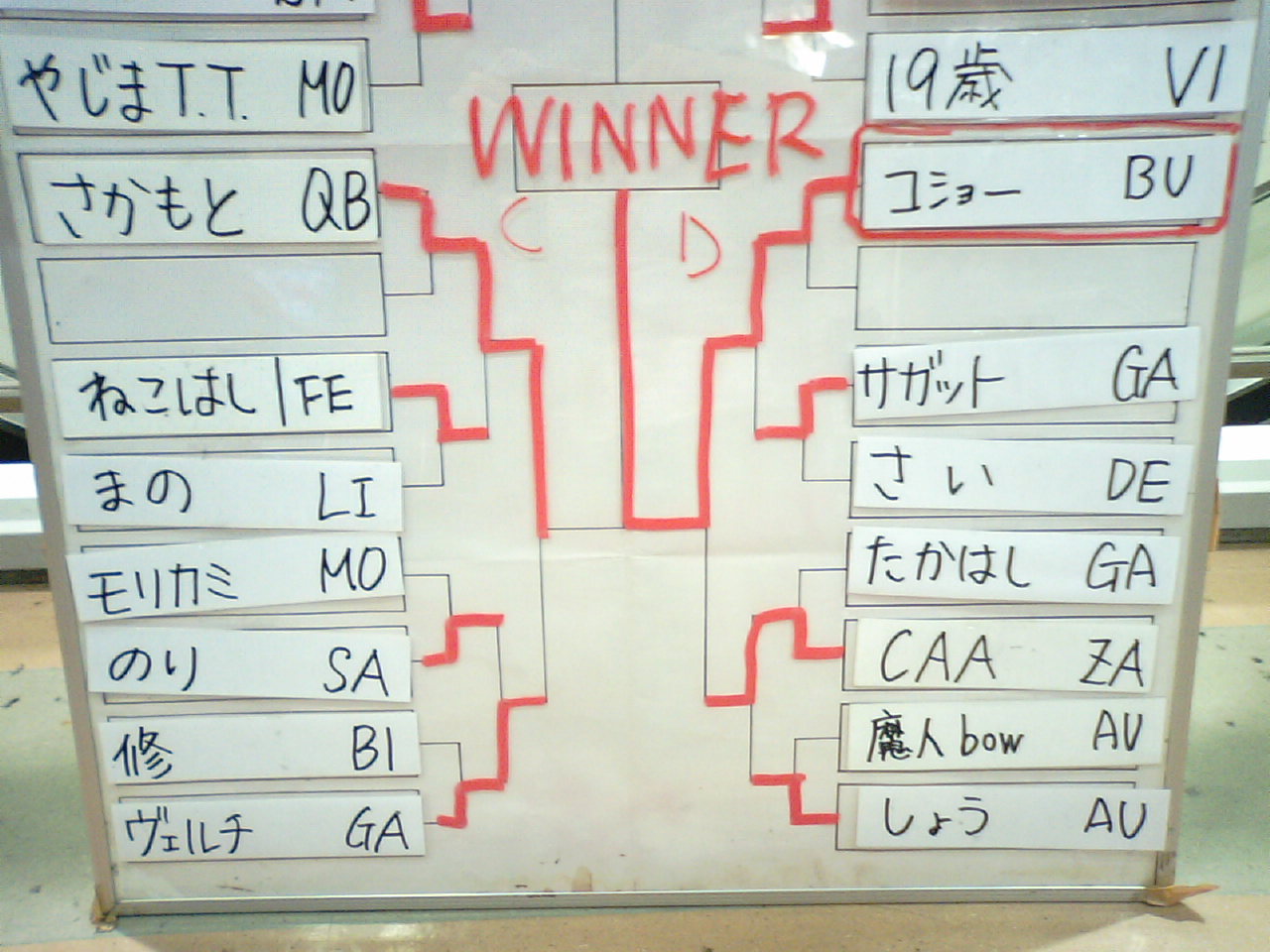 *ダブルイリミネーションとは簡単に言えば一回負けてもまだチャンスがあるトーナメントです。
